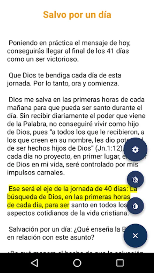 Entrar Upon entering each lesson, the day you have studied will be marked and inside you will find a wonderful message of hope. In each lesson you will see a gray button with a sun as an icon. This button is the settings menu which will allow you to: