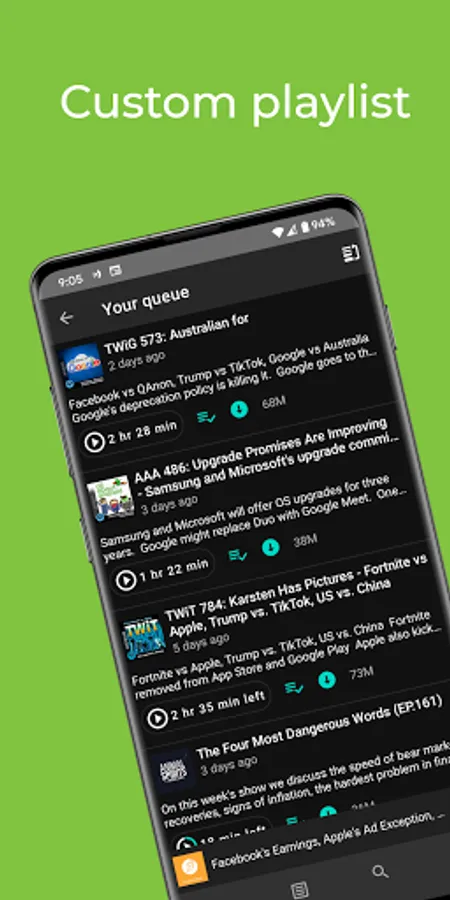 ➤ Customize your listening experience. Queue up episodes for a seamless experience.