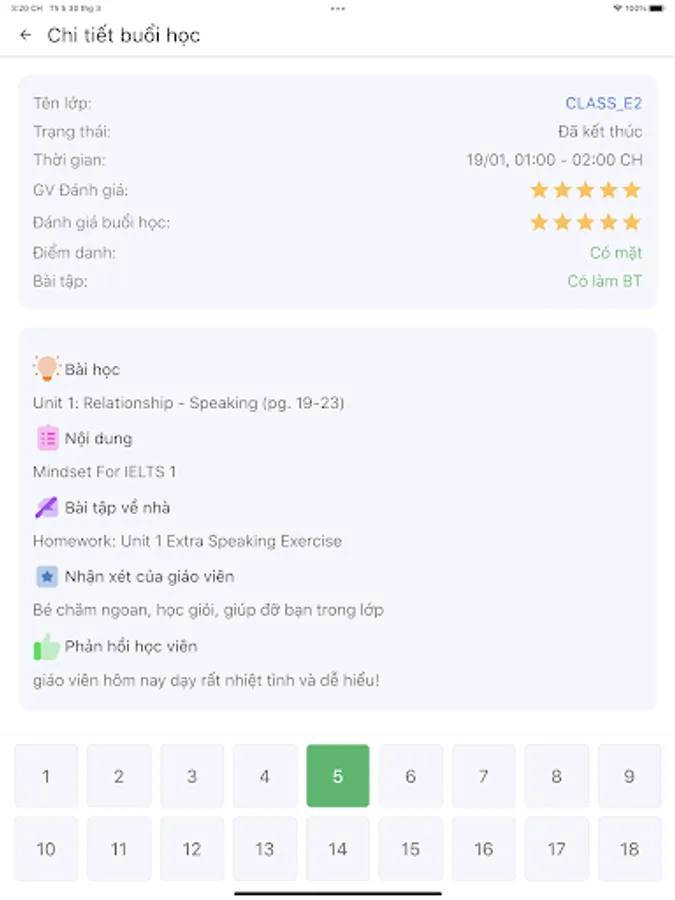 The application provides a solution to meet all needs in managing, updating information as well as interacting in the learning process, including: Viewing and editing personal information, Tracking class schedules, Updating notebooks electronic communication, Look up payment history, View information about personal gradebook, accumulated points, class photo gallery and quickly grasp the latest announcements on the application. In addition, connecting online is easy when you send feedback and chat with the center's professional customer care team.