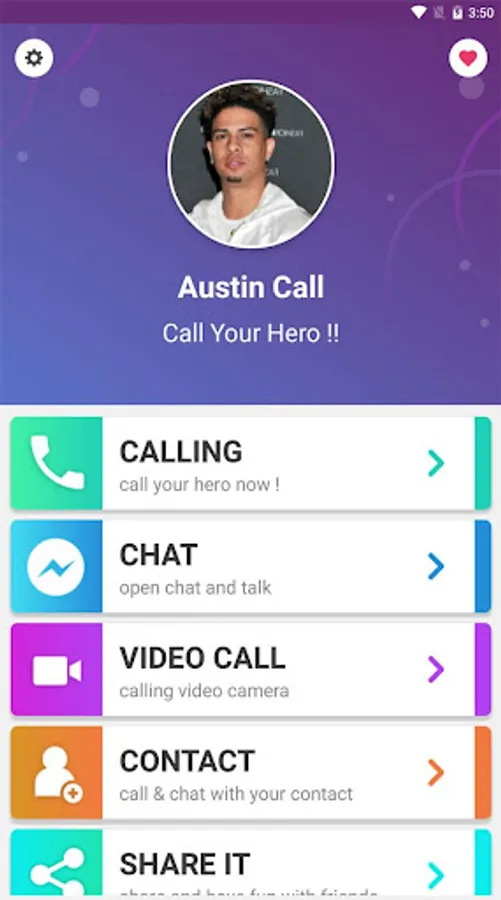 Today, Austin McBroom call is coming with many features, like you can simulate a fake call with the famous person that you like and your idol, so here in Austin McBroom fake call, and also you have a fake chat with him, and also receiving a cool video call from Austin McBroom, and there is also a contact section when you can also contact by fake calling other famous personalities, they are related to Austin McBroom.