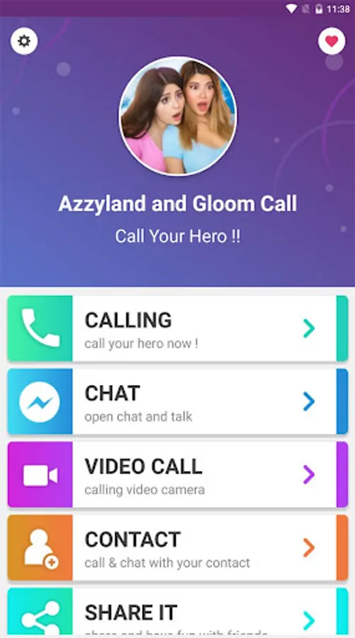 With Azzyland and Gloom you can get a fake call in anytime, and anywhere, just open the Azzyland and Gloom app, and start to call Azzyland and Gloom or chat with Azzyland and Gloom, and also have a video call with Azzyland and Gloom, install it now and start having cool time with you hero Gloom and Azzyland