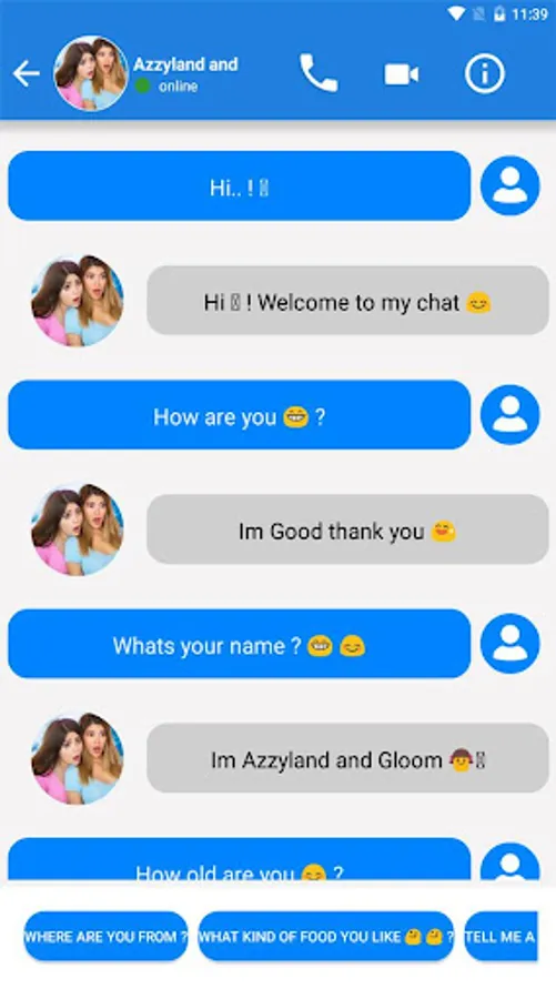 Azzyland and Gloom Call, Today you can prank your friends and joke with them, Connect to Azzyland and Gloom fake Call by clicking on the fake chat button and have fun with your friends.