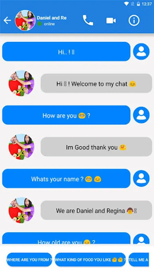 Download Daniel and Regina Call It's so cool and everyone has to get Face call time or live chat with Him.
