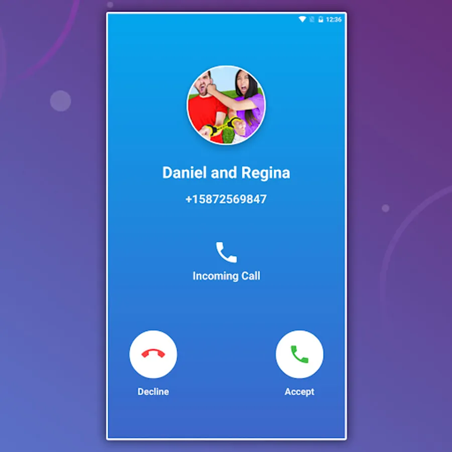 With Regina and Daniel you can get a fake call in anytime, and anywhere, just open the Daniel and Regina app, and start to call Regina and Daniel or chat with Regina and Daniel, and also have a video call with Daniel and Regina, install it now and start having cool time with you hero Regina and Daniel