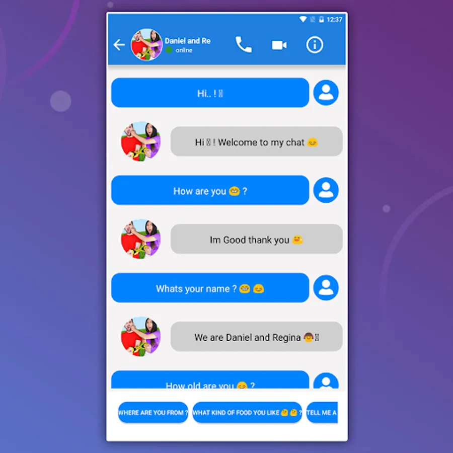 Daniel and Regina Call, Today you can prank your friends and joke with them, Connect to Daniel and Regina fake Call by clicking on the fake chat button and have fun with your friends.