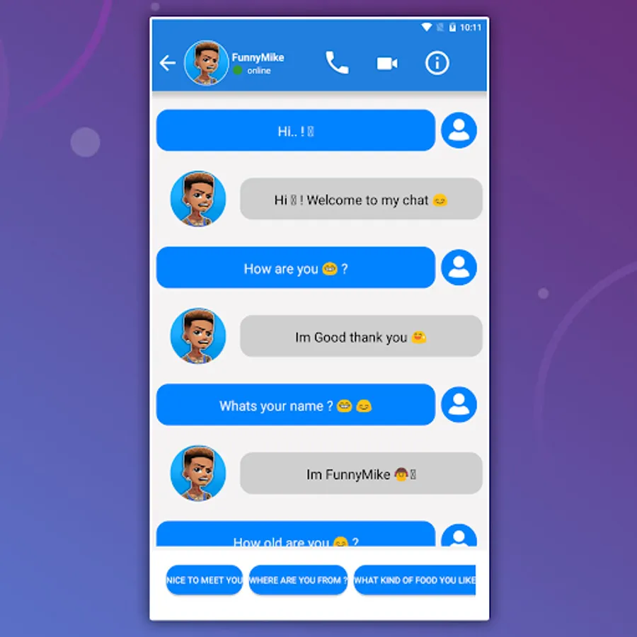 FunnyMike Call, Today you can prank your friends and joke with them, Connect to funnymike games fake call by clicking on the fake chat button and have fun with your friends.