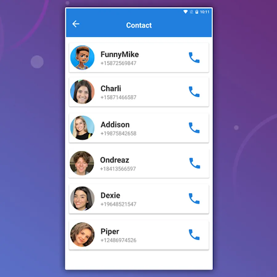 It's Nice That you can make a phone call and see FunnyMike fake video call face call time, here is fake caller with FunnyMike fake call is a simple application is very cute funnymike wallpaper fake call and fake video call with a simple live chat, So just choose your method to call FunnyMike fake call, you have 3 option to connect with FunnyMike call (calling voice, live chat, calling video), Enjoy calling FunnyMike live wallpaper Chat in an easy way, feel free and download this Funny Mike call for have fun with friends.