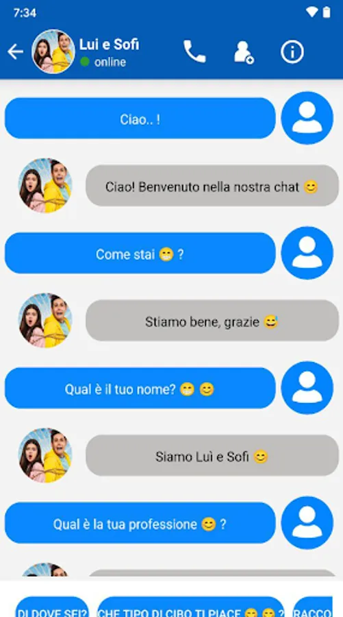 Me contro Te fake Call, Today you can prank your friends and joke with them by lui e sofi Call, Connect to me contro te giochi fake call by clicking on the fake chat button and have fun with your friends.