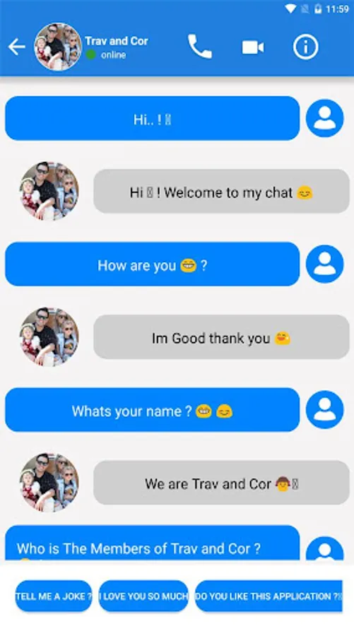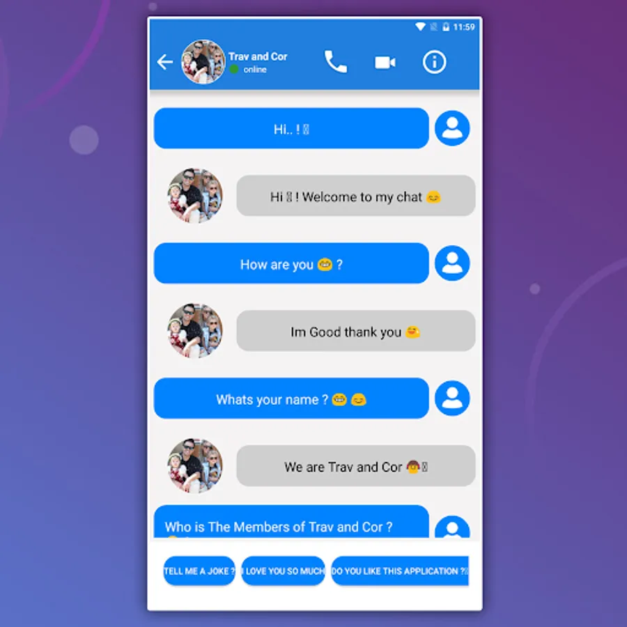 With Trav and Cor you can get a fake call in anytime, and anywhere, just open the Trav and Cor app, and start to call Trav and Cor or chat with Trav and Cor, and also have a video call with Trav and Cor, install it now and start having cool time with you hero Trav and Cor