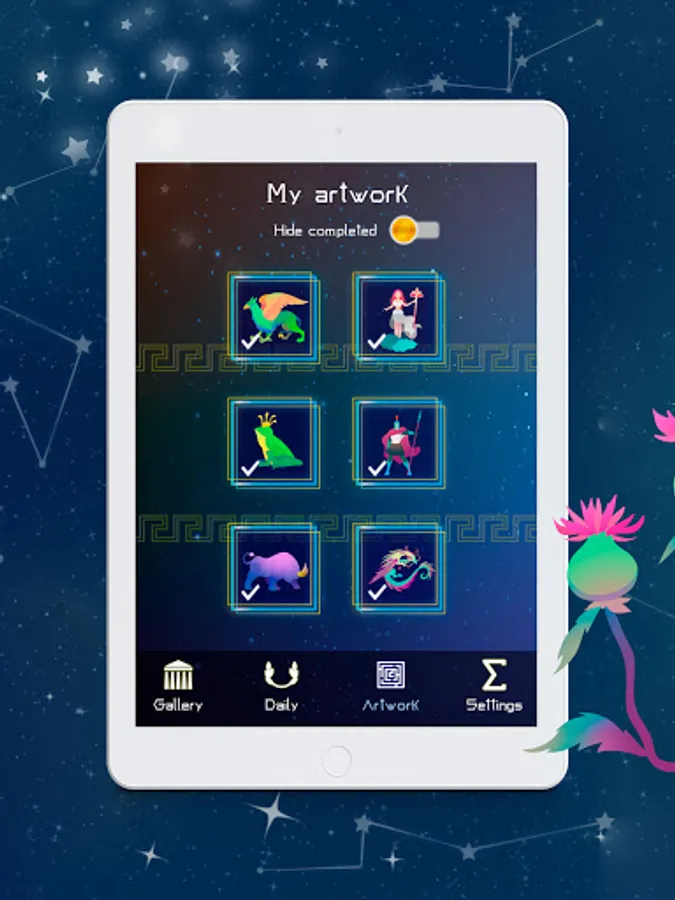 Our anti-stress coloring book will let you relax after work. Open Connect the Dots for Adults, choose a picture and connect the coloring dots. Don't forget to turn on the music in our app, it will help you to immerse yourself in meditation. Connect the dots by number as if they were constellations. Connect the dots by number at least three times a week and you will feel yourself becoming more calm and relaxed.