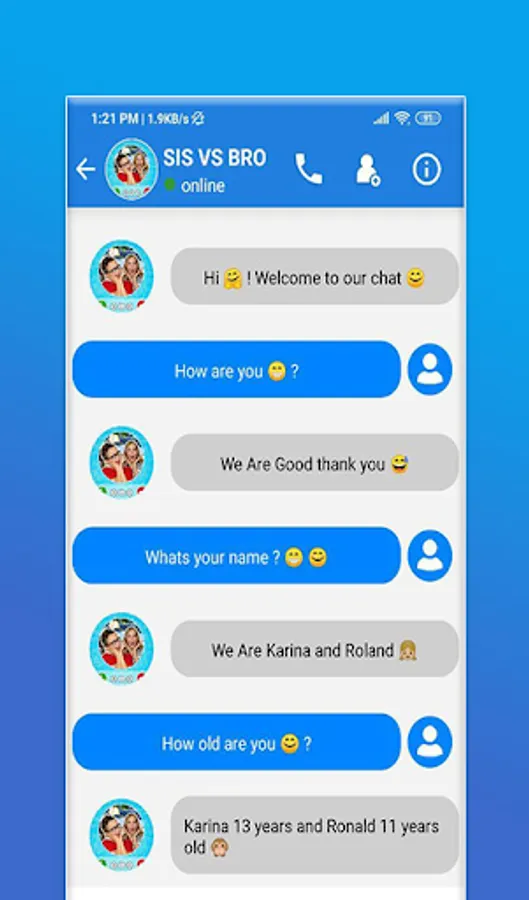 SIS VS BRO games , You can receive a fake call simulate a real voice of SIS VS BRO Videos and also simulate a real video of SIS VS BRO call, using this app to have a fun time is very good because to call you idol SIS VS BRO and have a simulation fake call with sis vs bro karina and ronald, that makes a very funny moment with your friends.