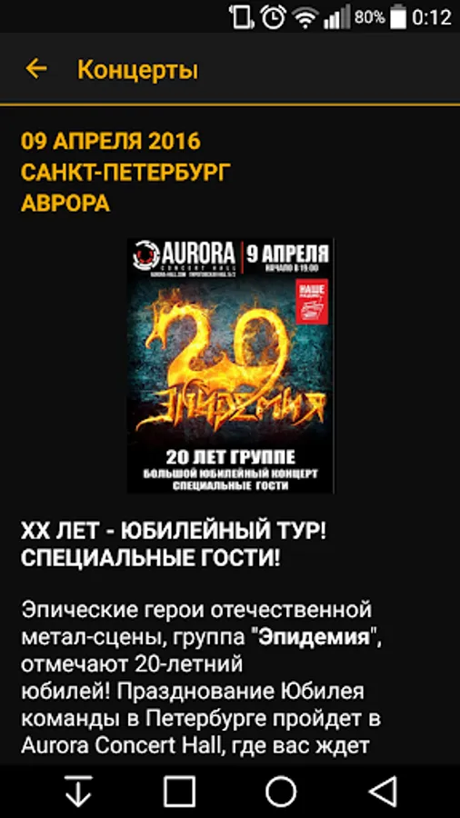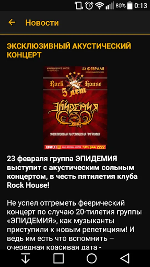 Reminders about concerts in your town: with the app you just can not miss epidemic!