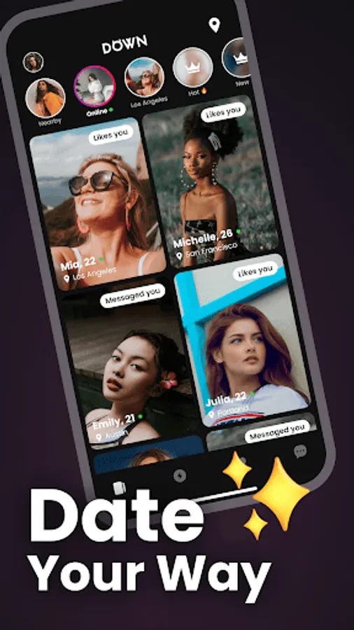 Online dating with DOWN Dating App is easy — Find friends, casual dates, pure love, or anything in between to chat with.