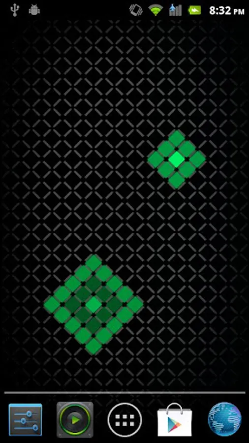 Reacts to screen touches, swipes, and performs a unique pattern formation around an icon when dropped on the home screen.Can also be set to show the status of battery through different colors and pulsing animations.