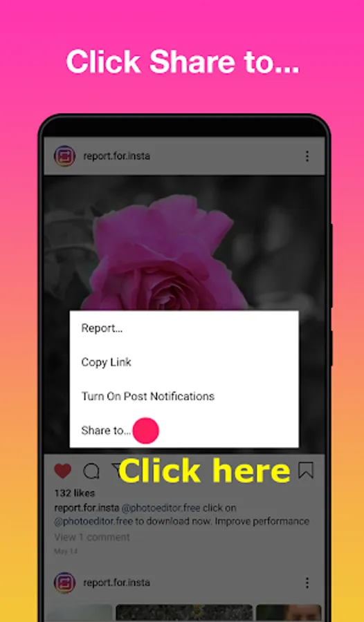 With Video downloader - Repost Instagram, you can easy repost a video or photo. All you need is to copy link or share link or that post, then Repost app will download video & photo automatically. It's very easy and fast. By this way, you can check your Instagram constantly and also download any video and photo that you're interested.