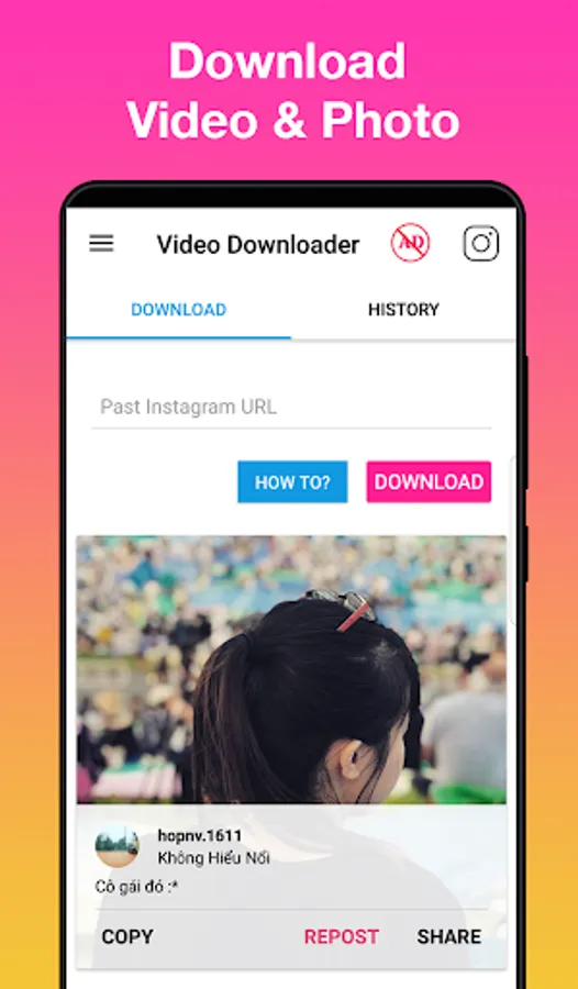 Repost for Instagram (also known as Video Downloader for Instagram) help you download video, photo from Instagram and IGTV then repost on Instagram or share on Facebook,... "Instagram Video Downloader - Repost Instagram" support you to copy caption and repost with watermark & save multiple photo and video super fast 🚀 and 💯 free