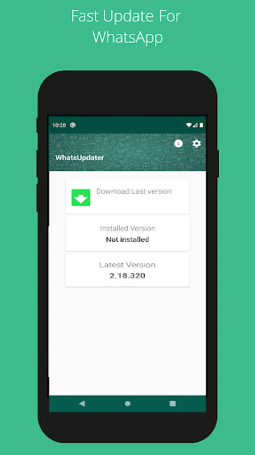 Automatic Updater is an app to update to the latest version of WhtsApp for Android. FastUpdater for WhatsApp checks the latest Fast version available on the officiel website and enables you to install it automatically.