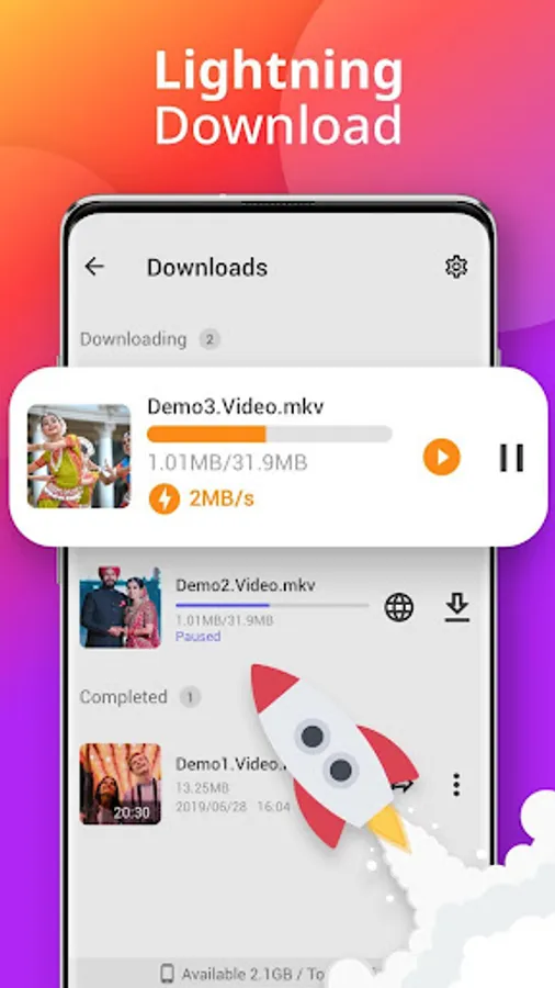 Powerful download manager allows you to pause, resume and remove downloads. Manage your downloads with the smart download manager.