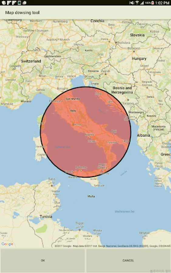 3. Pinch to zoom and select right area to search on map. If you select right area, press OK button.