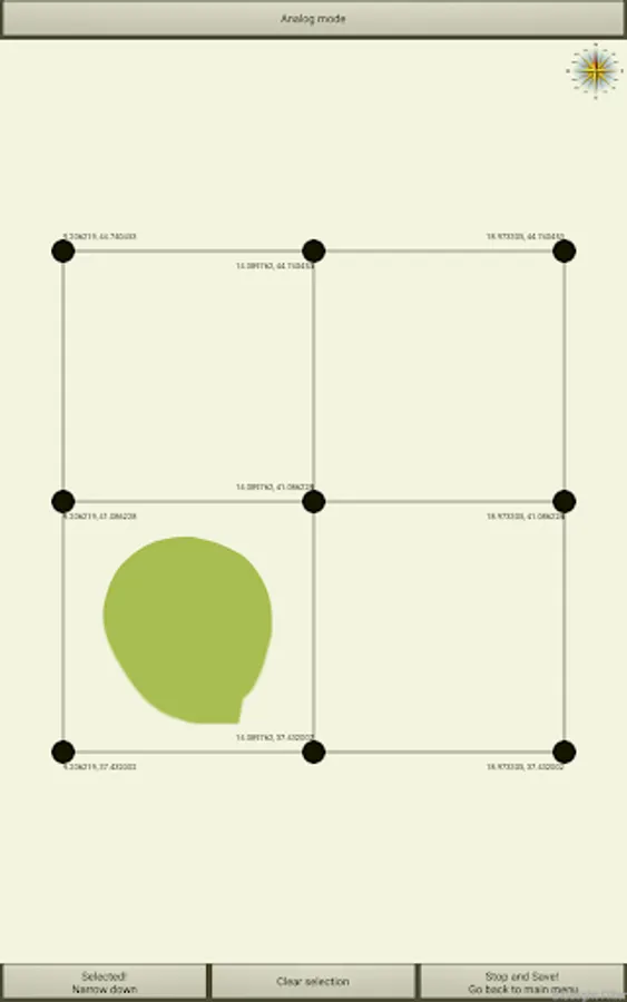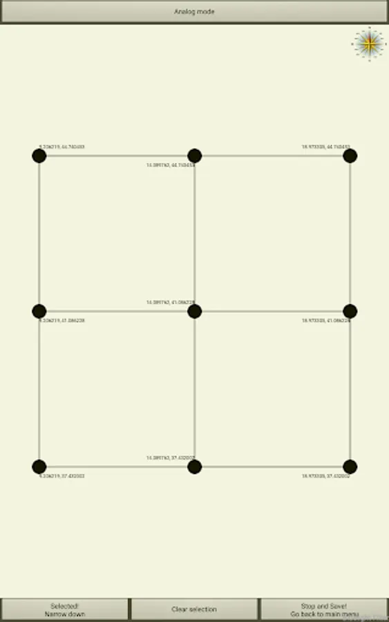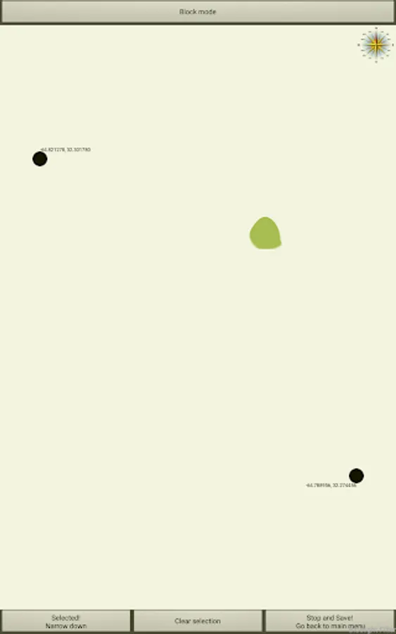 4. Then blank screen with two dots and latitude/longitude will show up.
