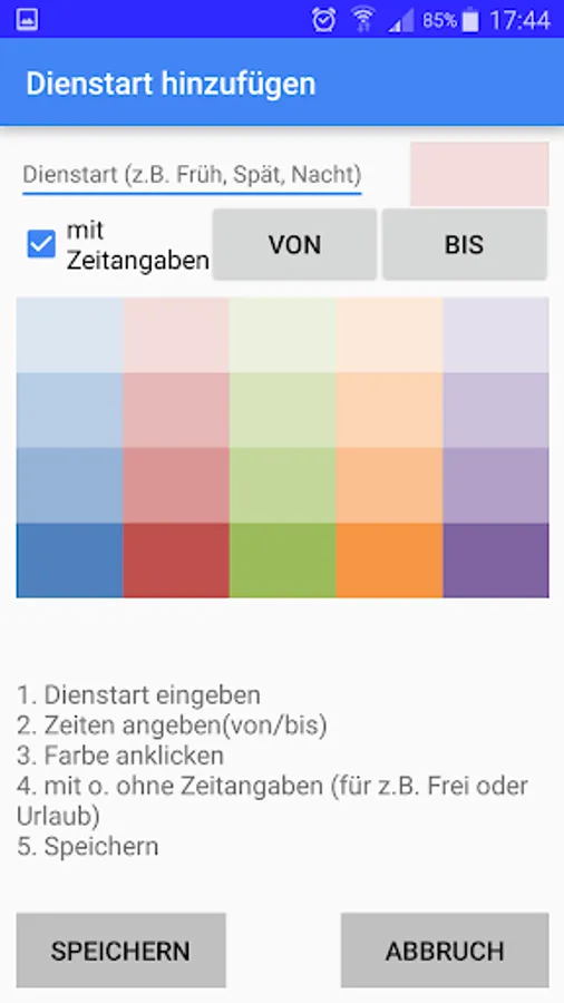 Create your service templates according to your wishes with or without time information (e.g. breakfast service from 5:00 -. 13:00 hours)