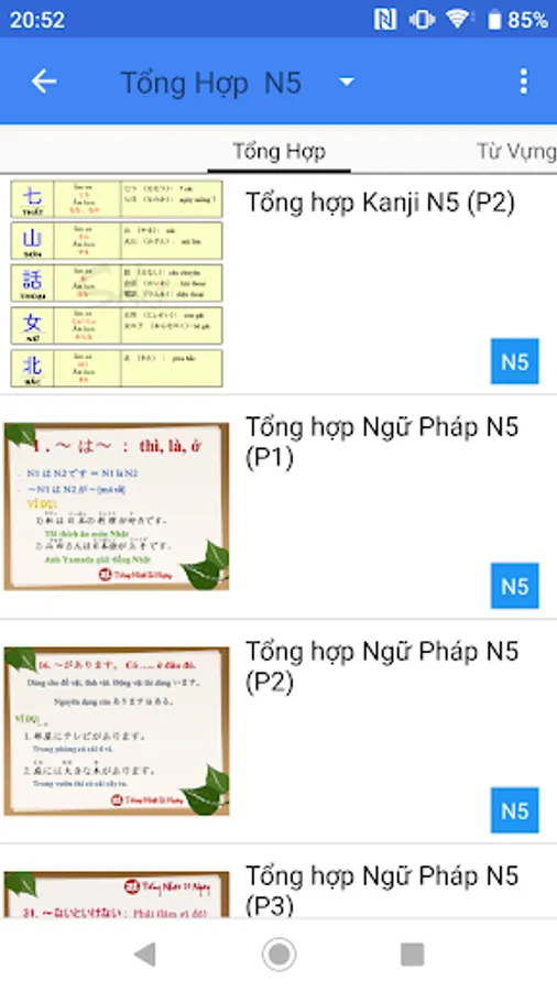 + Includes vocabulary, grammar, and kanji arranged by N5 and N4 levels