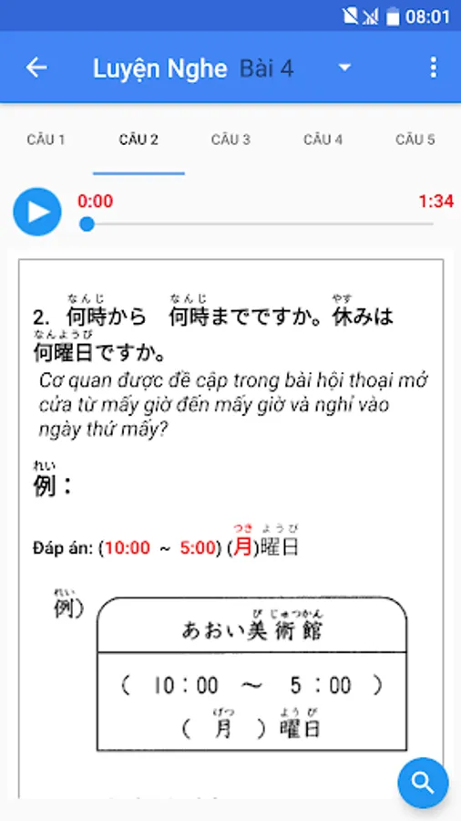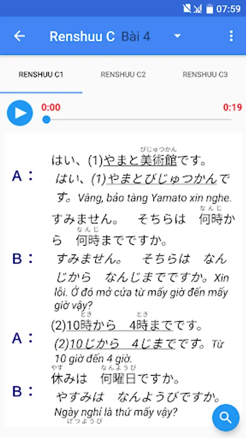 + Each lesson has examples, pronunciation, accompanying exercises