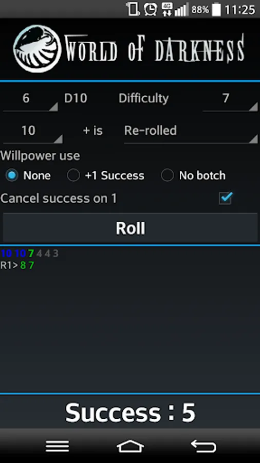 - Willpower use handling (+1 success / no botch)
