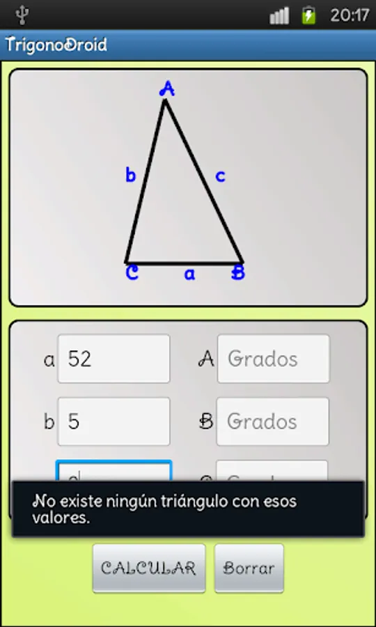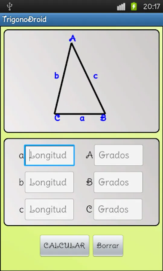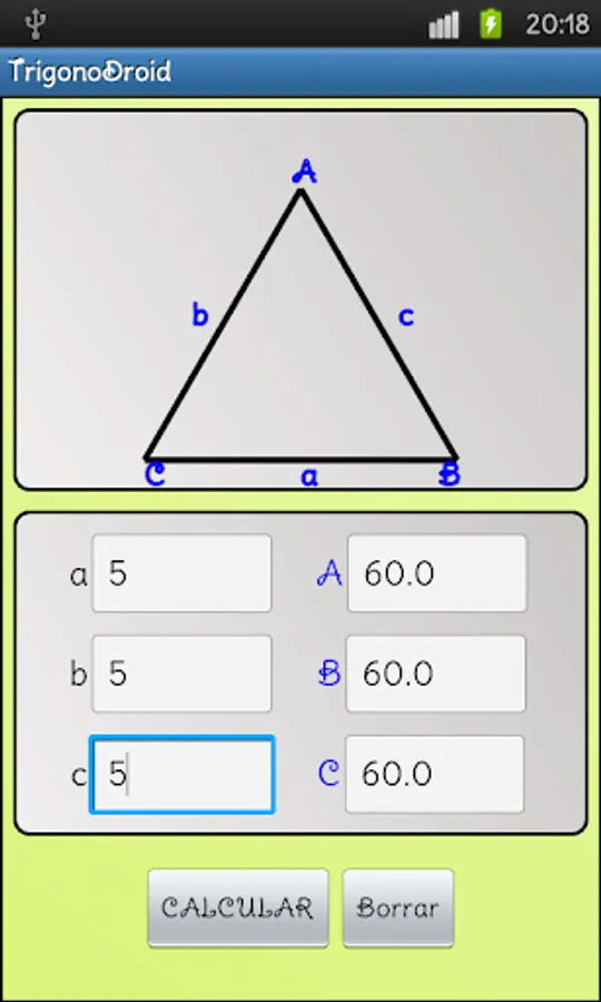 Solve triangles will no longer be any problem. With this application you can know all the details of a triangle (sides and angles) knowing only three of them whatsoever. It also presents a picture of how it would be the triangle. Very useful for solving triangles as checking exercises handmade.