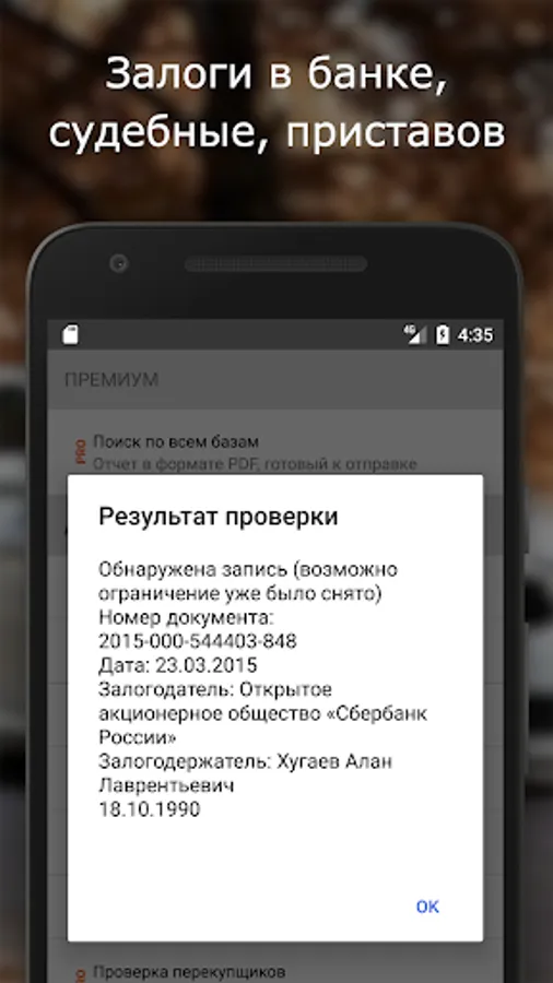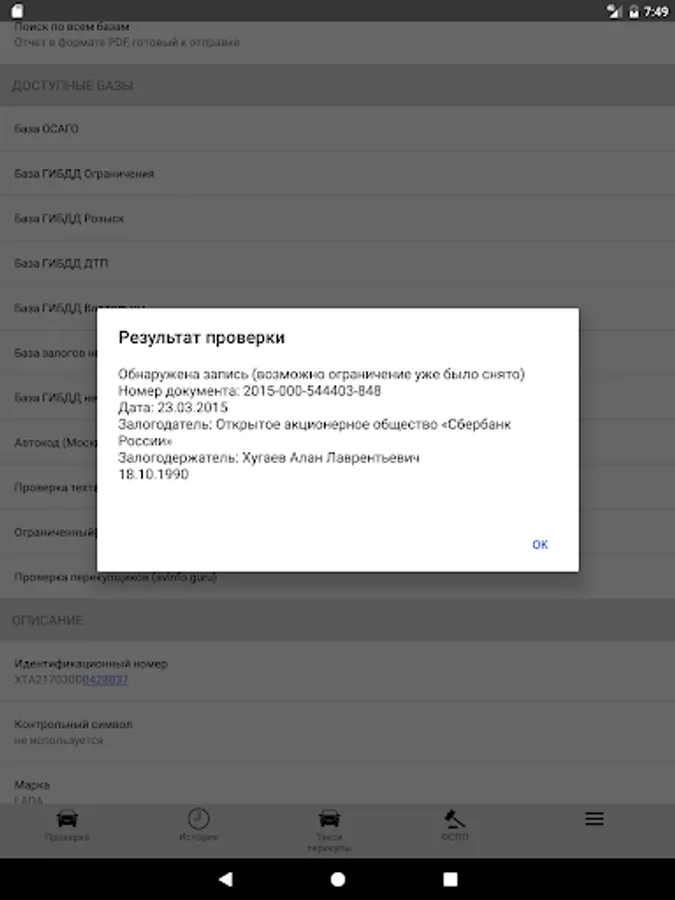 Our app allows you to check any car to hijack and crash. Check the vehicle owner on the basis of the FSSP.