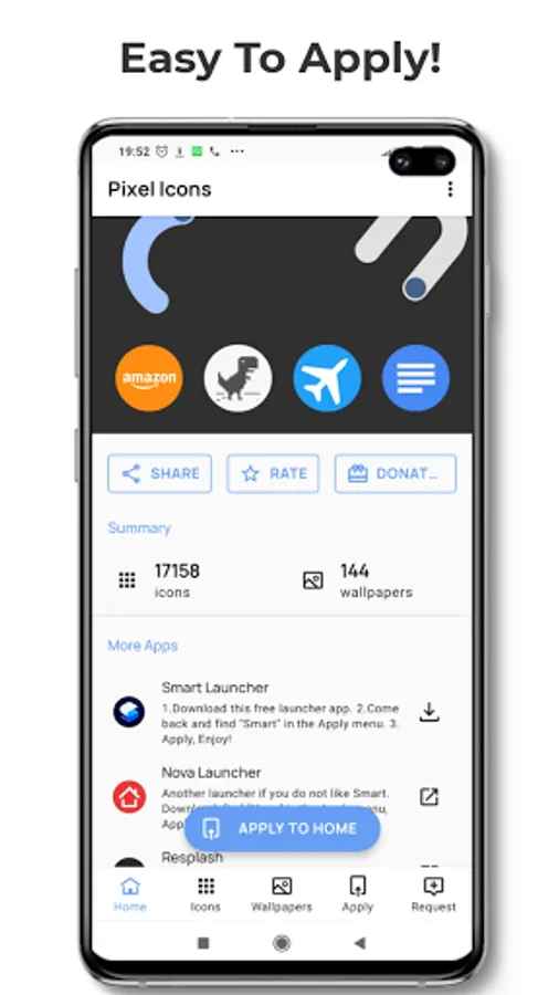 Apply the Pixel icon pack, set a cool stock Pixel Wallpaper from the icon pack's amazing collection of OVER 140 PIXEL STOCK WALLPAPERS or get one from the recommended app in the icon pack's home screen and live your Pixel dream with this super easy to install icon pack.