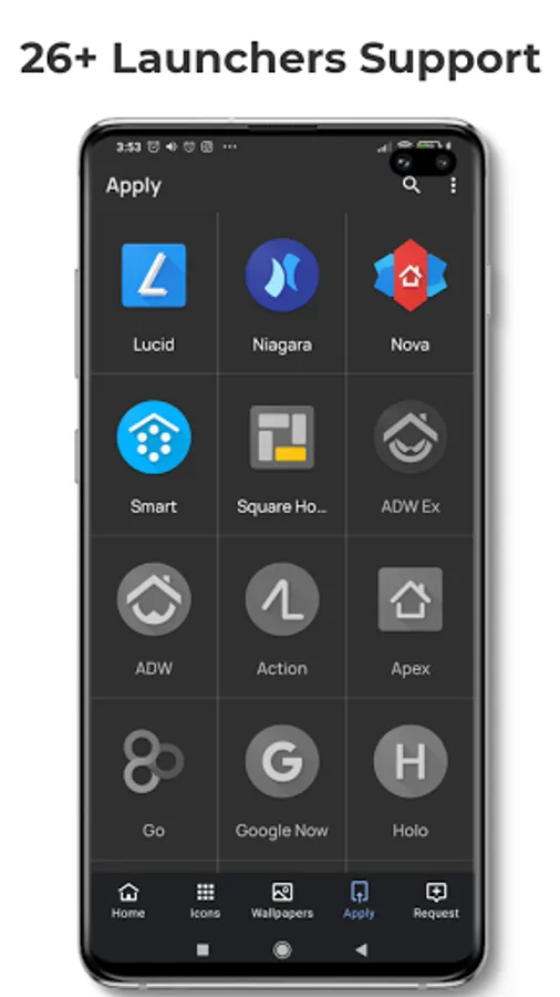 (Action Launcher, ADW Launcher, Apex Launcher, Atom Launcher, Aviate Launcher, Epic Launcher, Go Launcher, Holo Launcher, Holo Launcher HD, Inspire Launcher, KK Launcher, L Launcher, Lucid Launcher, Yandex Launcher, and many more...)
