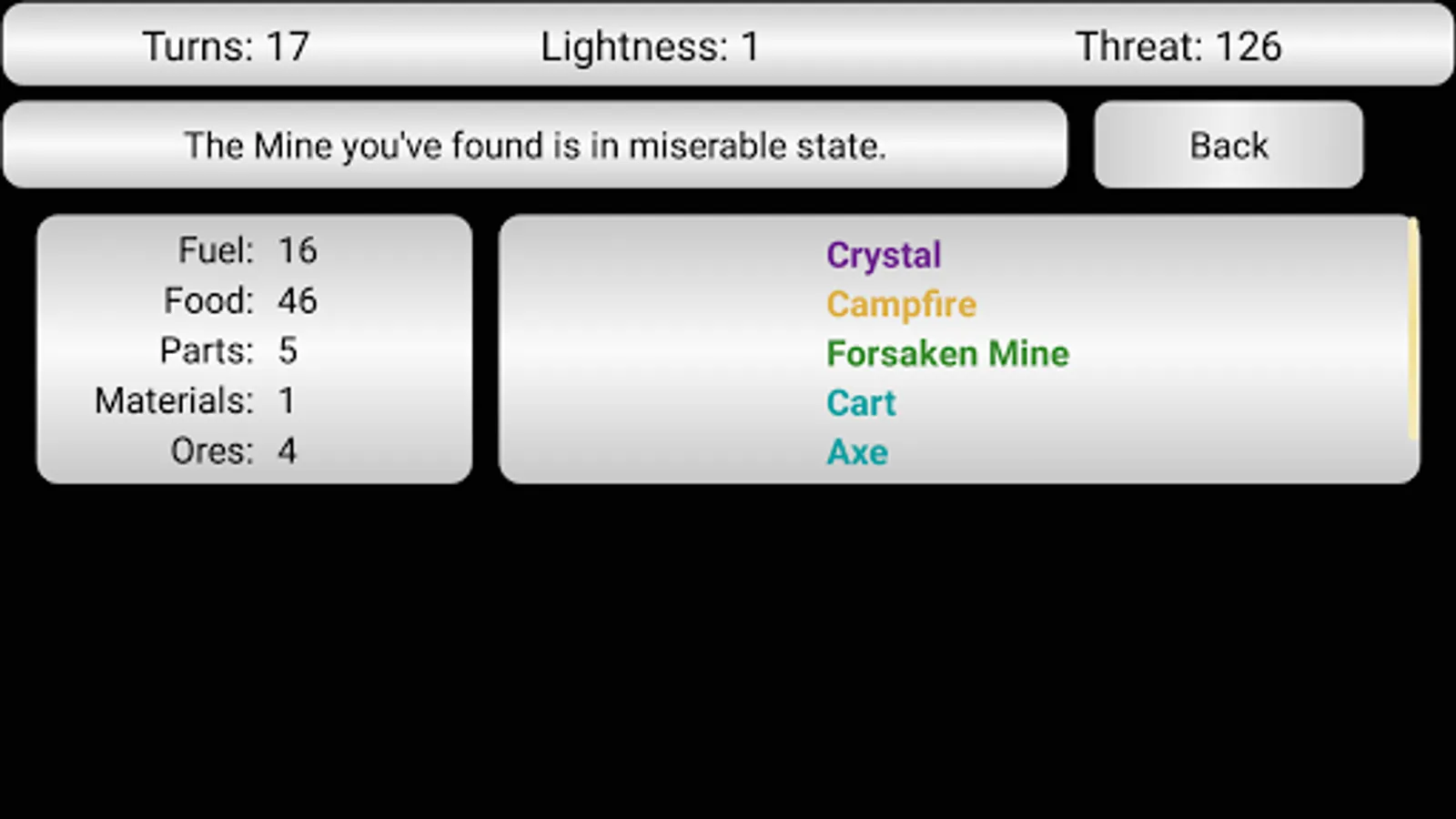 * Survive and progress using a simple interface, inspired by many other Text Adventure games