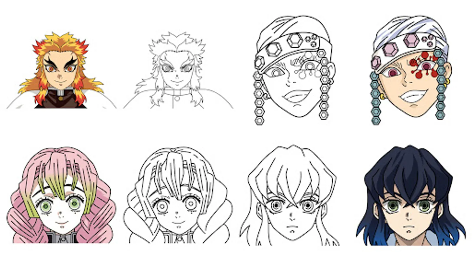 More than 16 lessons on how to draw characters from the anime Demon Slayer.