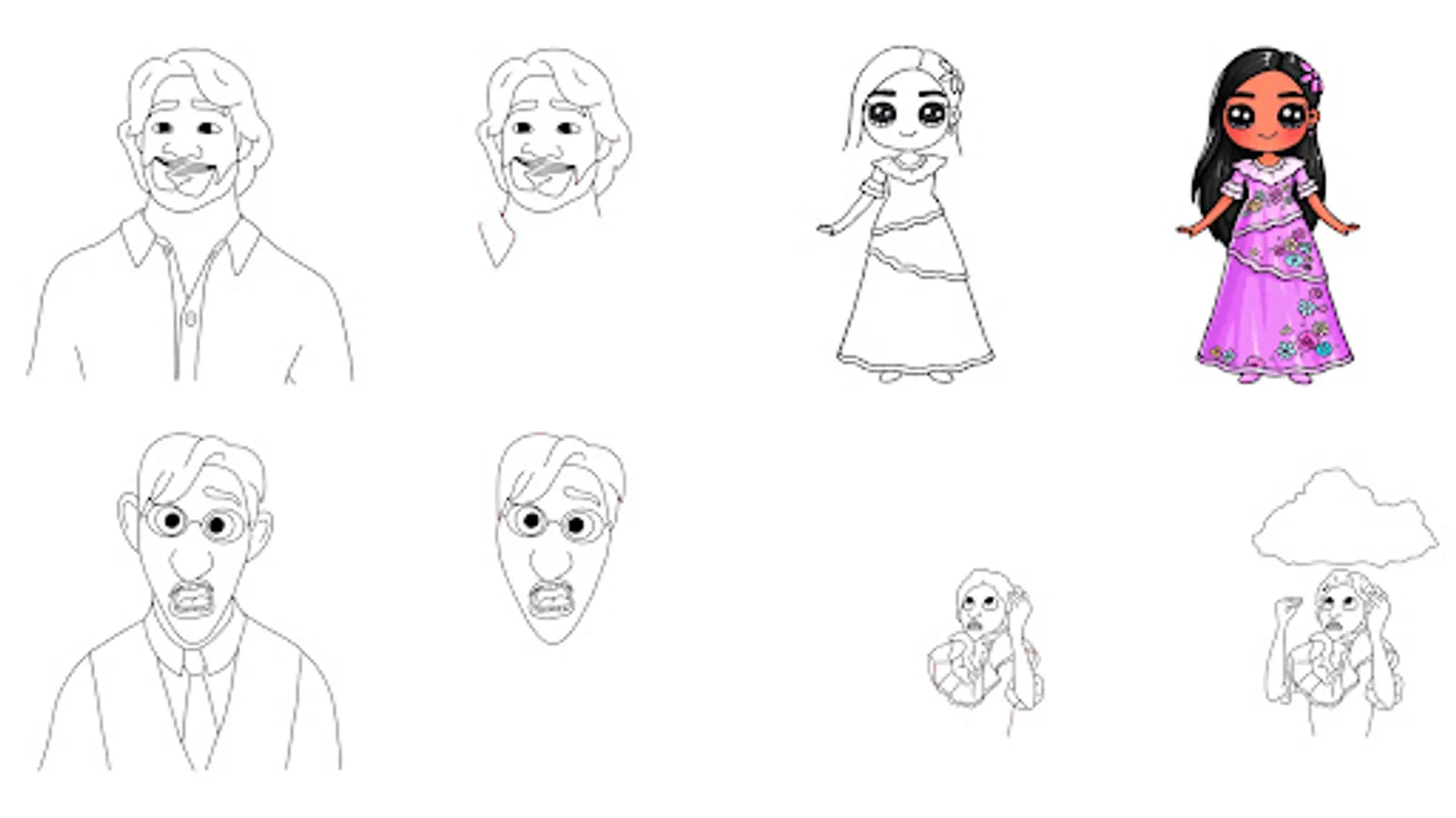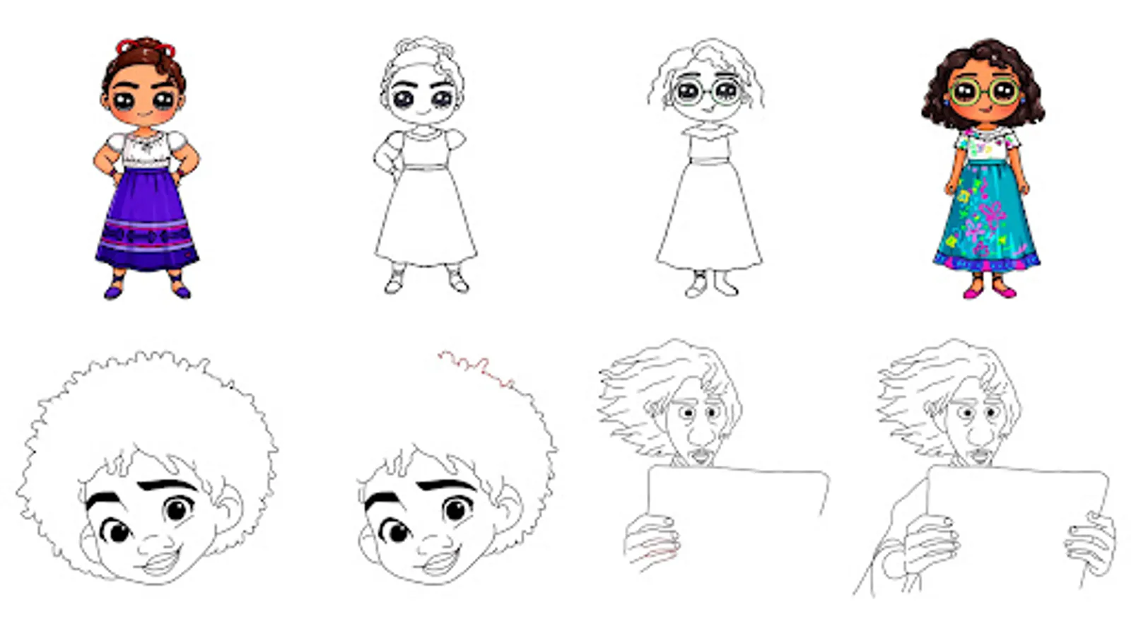 The "How to Draw Encanto characters" app teaches you how to draw Encanto characters on a piece of paper with a pen.