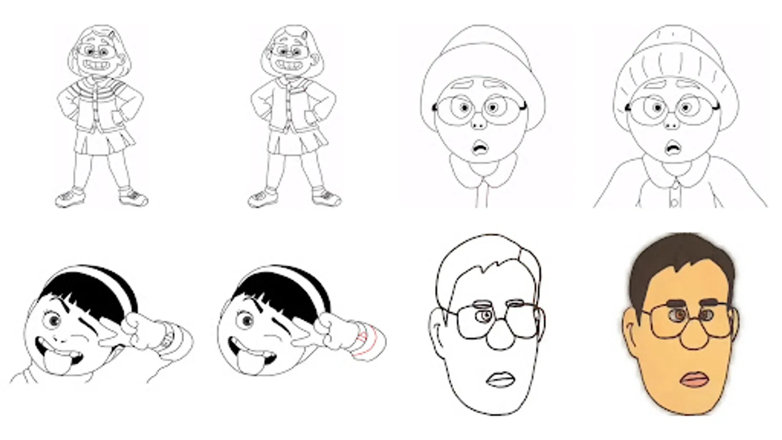 We have implemented lessons on a piece of squared paper, to make drawing cartoon characters easier.