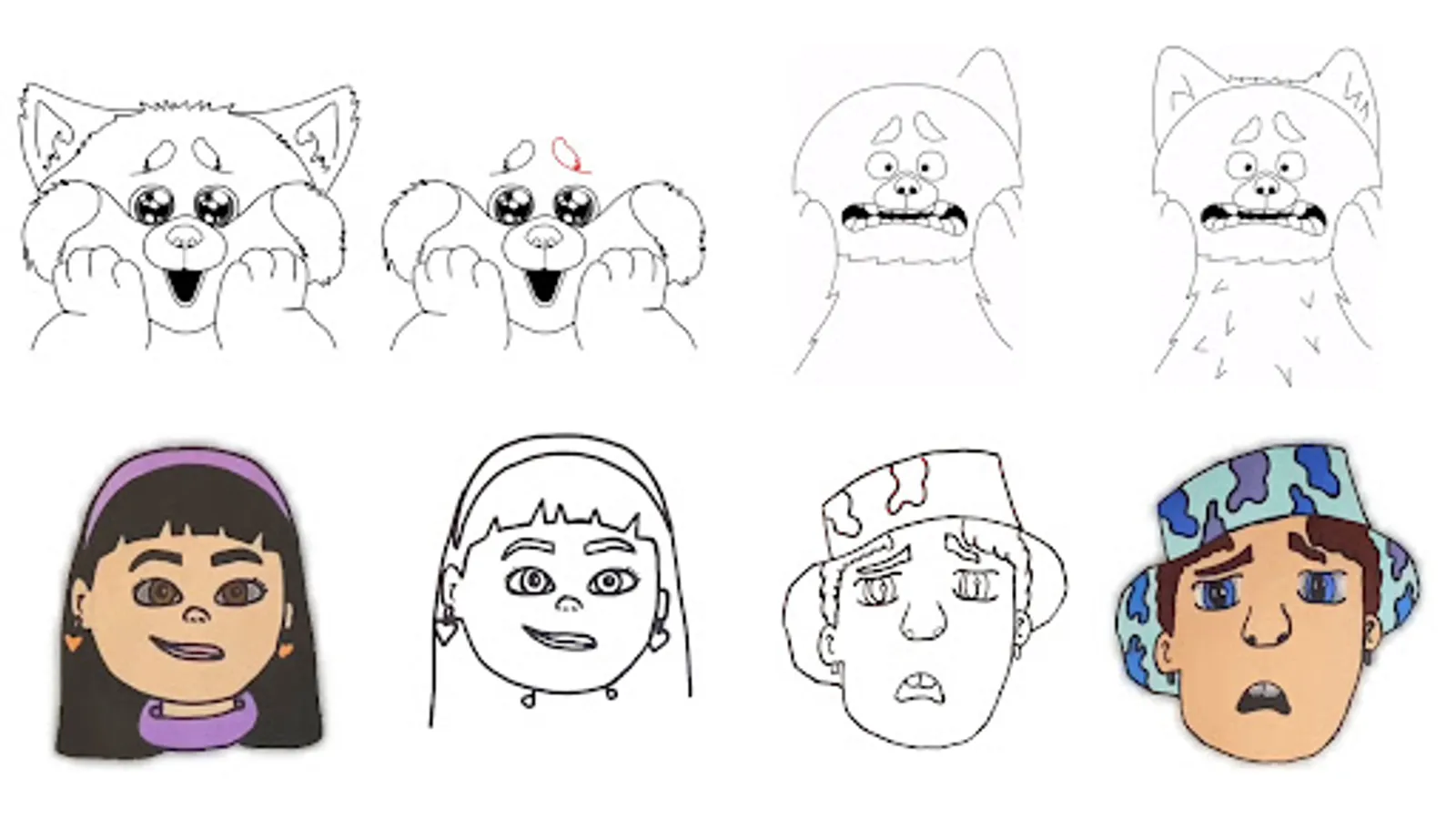 The "How to Draw Turning Red characters" app teaches you how to draw Turn red characters on a piece of paper with a pen.