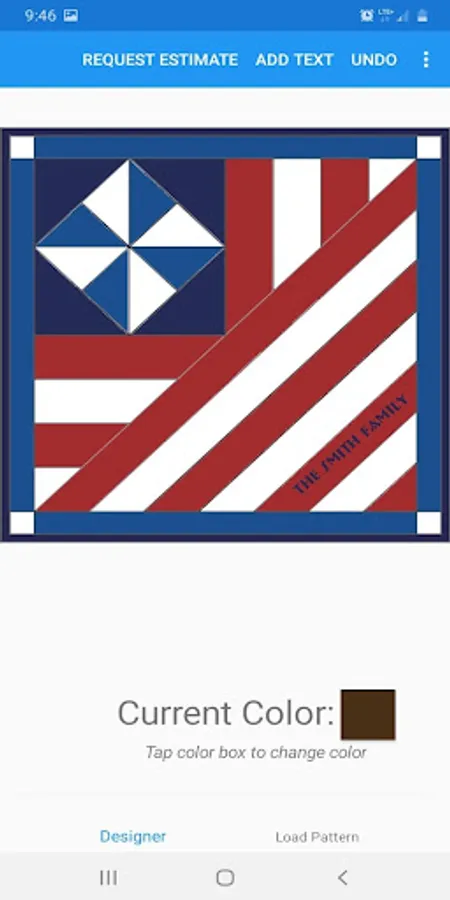 It's easy to create your own custom barn quilt today! First select a pattern from our library. Tap to fill quilt pieces with color. You can create your own custom colors and add text. Get creative! You can save and edit your designs.