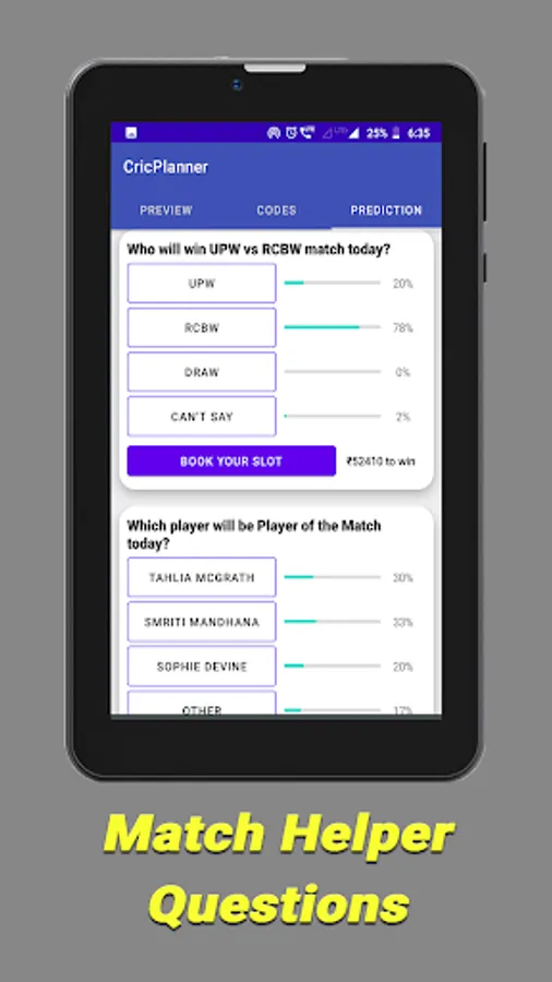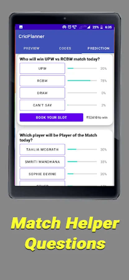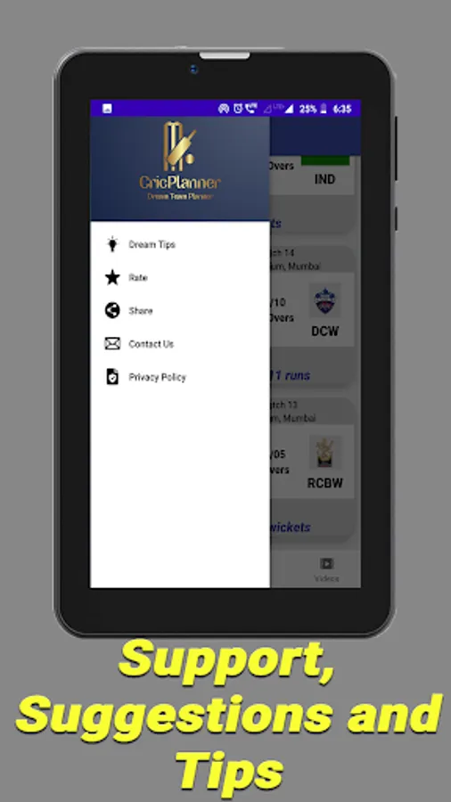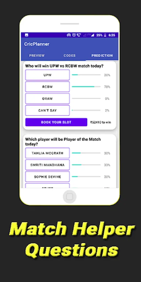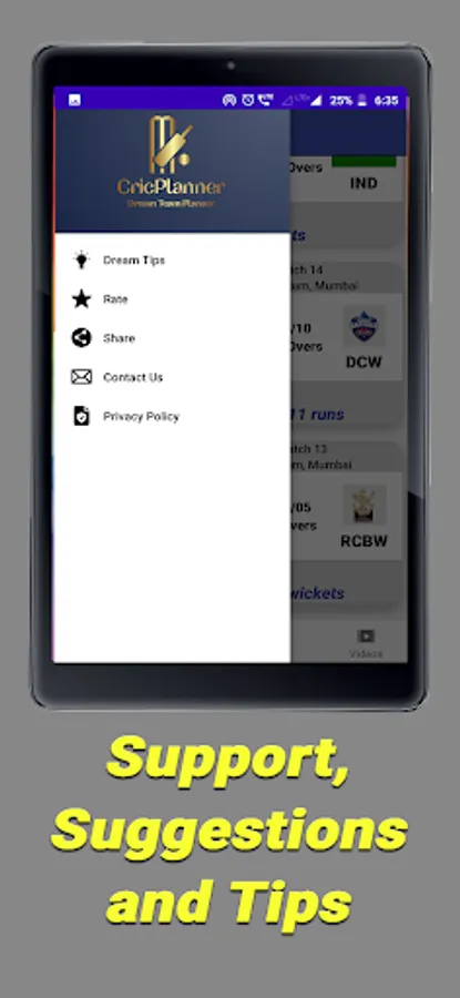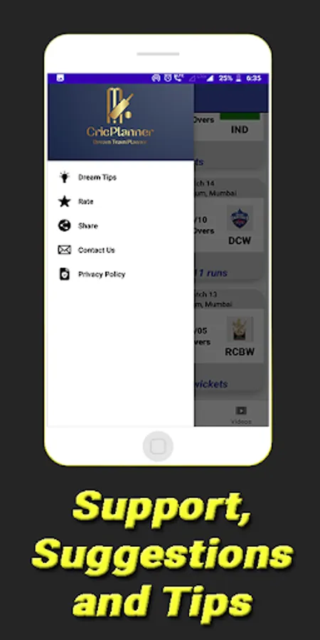 Cricplanner only rely on the data based on past performances of players and teams. It helps you to predict and create your own team. It is completely left to your discretion to consider this data while creating your dream cricket team as we only share statistics, updates and other user predictions inside app via comments and polls, based on which you can think and select your dream teams for dreams11, my11circles team. Our information can only be used for free contests on dreams11 app, My11circle and other fantasy platforms and we don't give any suggestion for grand league as we would like to give statistics only for free contests only.