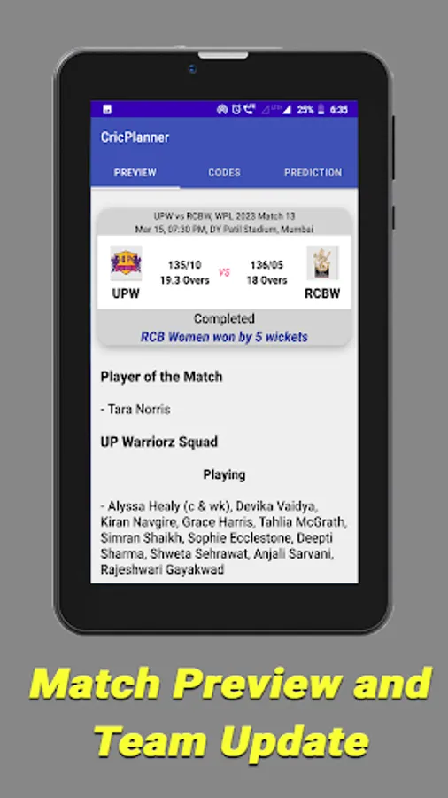 CricPlanner Prediction and tips is a latest launched Dream Team Planner app that provides Match Analysis, Pitch Report, Weather Report, Scorecard and Probable XI teams for playing on various sports apps such as Dream11, MyTeam11, MyCircle, First Game etc.