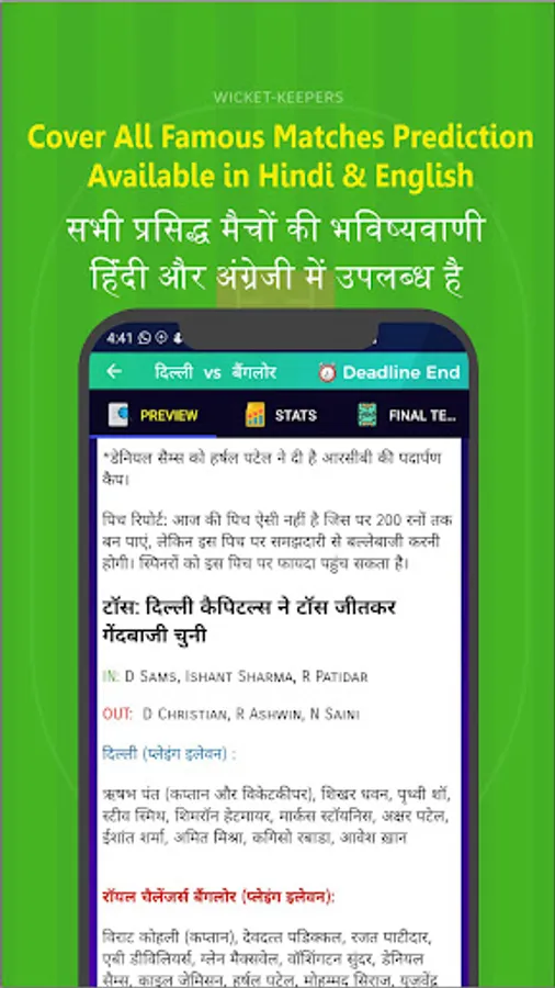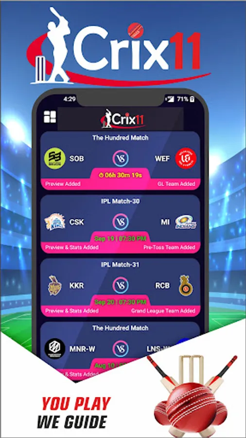 launched Fantasy Cricket Sports Prediction App that provides Match Analysis, Deep Stats, Pitch Report, Weather Report, Toss Prediction, Key Players, Player's recent form stat, Probable XI and Teams for playing on Various Fantasy Sports apps like Dream11, My 11 Circle, MyTeam11, FanFight, PayTM First Game, Gamezy, Real11, Howzat, PlayerzPot, BatBall11, PayTM First etc.