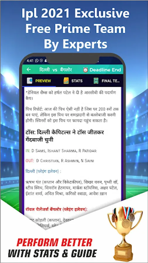 - Premium Teams for Football and Kabaddi. - Fantasy Cricket Pitch and Weather report.