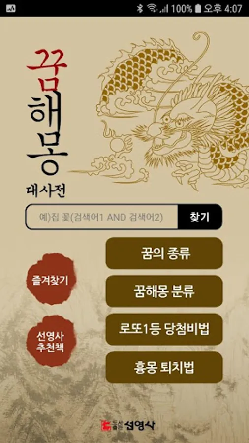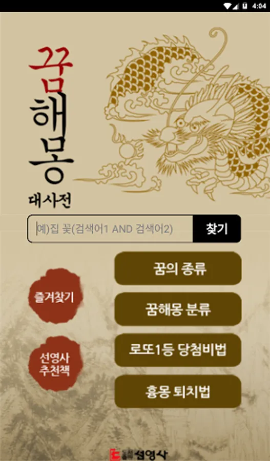 현재 시중서점에서 25,000원에 판매중인 꿈해몽 대사전(증보판)의 내용 전체를 앱으로 제작한 것입니다.