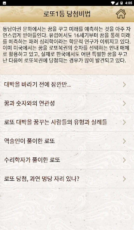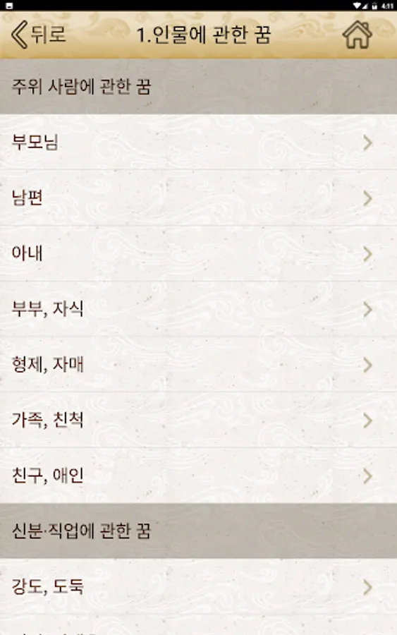 꿈해몽 대사전 앱에는 이런 기능이 있습니다.