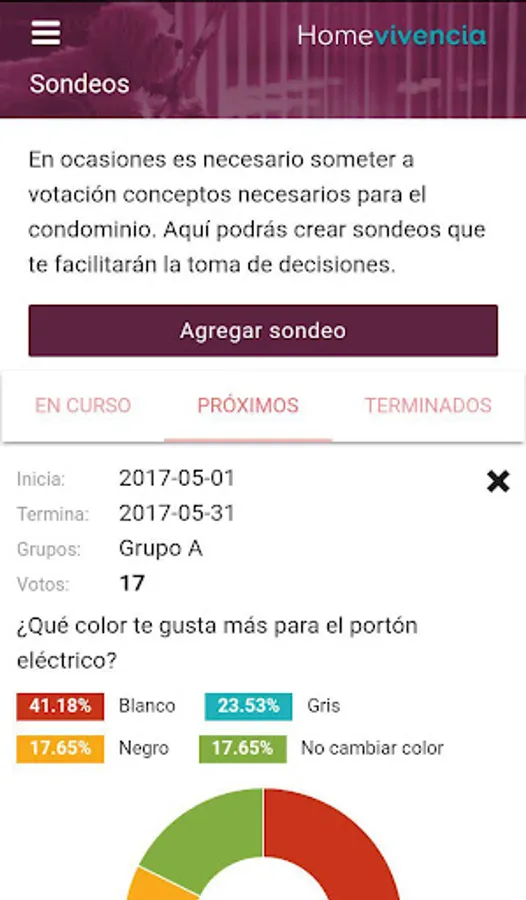 HOMEVIVENCIA is composed of three profiles Administrators (external or the neighbors), neighbors and employees (this profile is optional)