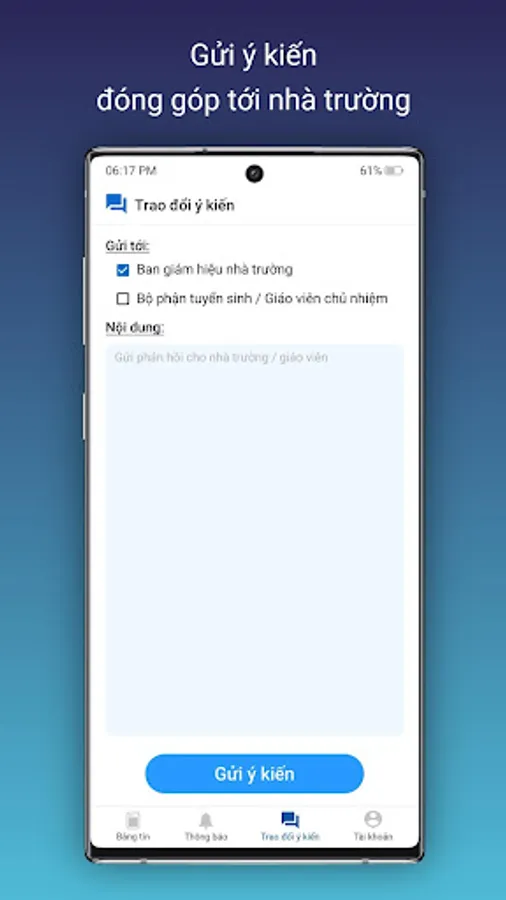 - Gửi phản hồi tới nhà trường, giáo viên một cách thuận tiện và nhanh nhất.