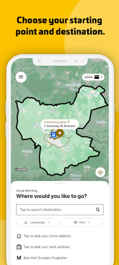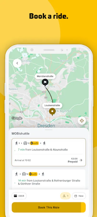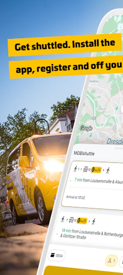 Get shuttled: Simply enter your journey request and the MOBIshuttle app will suggest a suitable connection and tell you the fare. The fare is based on the VVO tariff and is reduced if you have a valid public transport ticket.