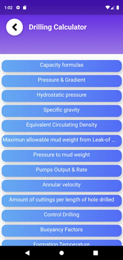 App that has a calculator for basic oil / gas drilling formulas, calculator for the capacity and volume of different fluid tanks, also provides information on pipe measurements and well control formulas.