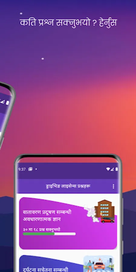 The questions are provided and asked in the written examination taken to the candidates of License (Category 'A') by the DOTM Nepal. You can practice them in a more realistic and digital way. You need not buy a separate book for practicing the questions.