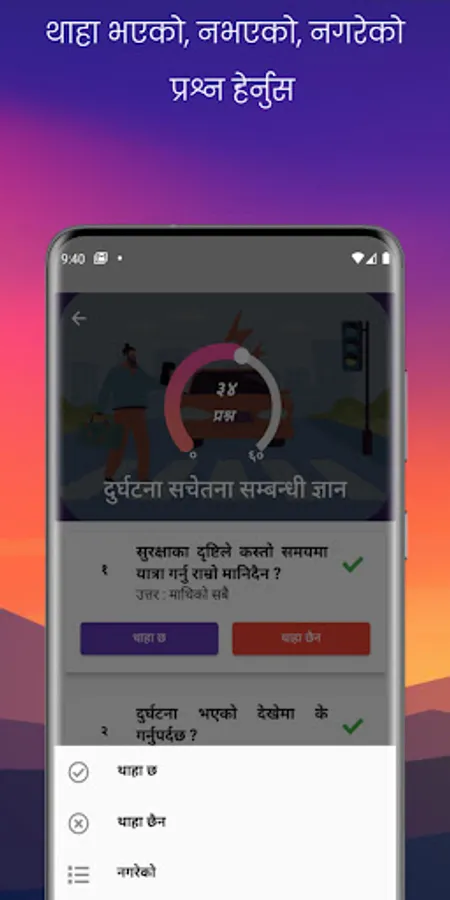 - Knowledge of driving rules (सवारी ऐन नियमसम्बन्धी ज्ञान)